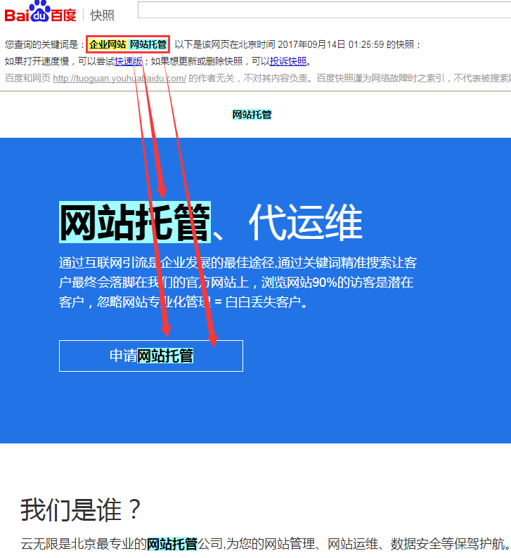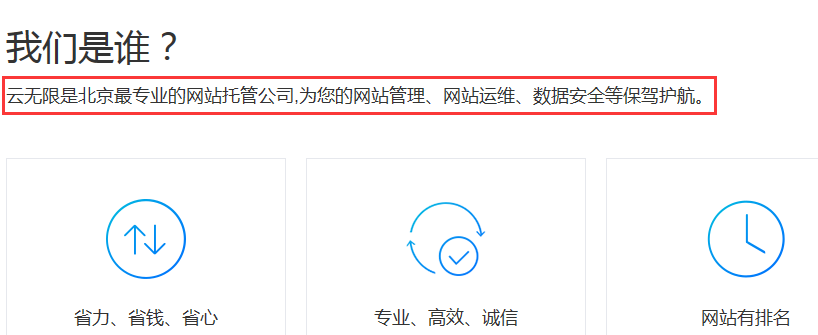 修改为:云无限是北京最专业的网站托管公司,为您提供企业网站托管、网站运维、数据维护等服务。
