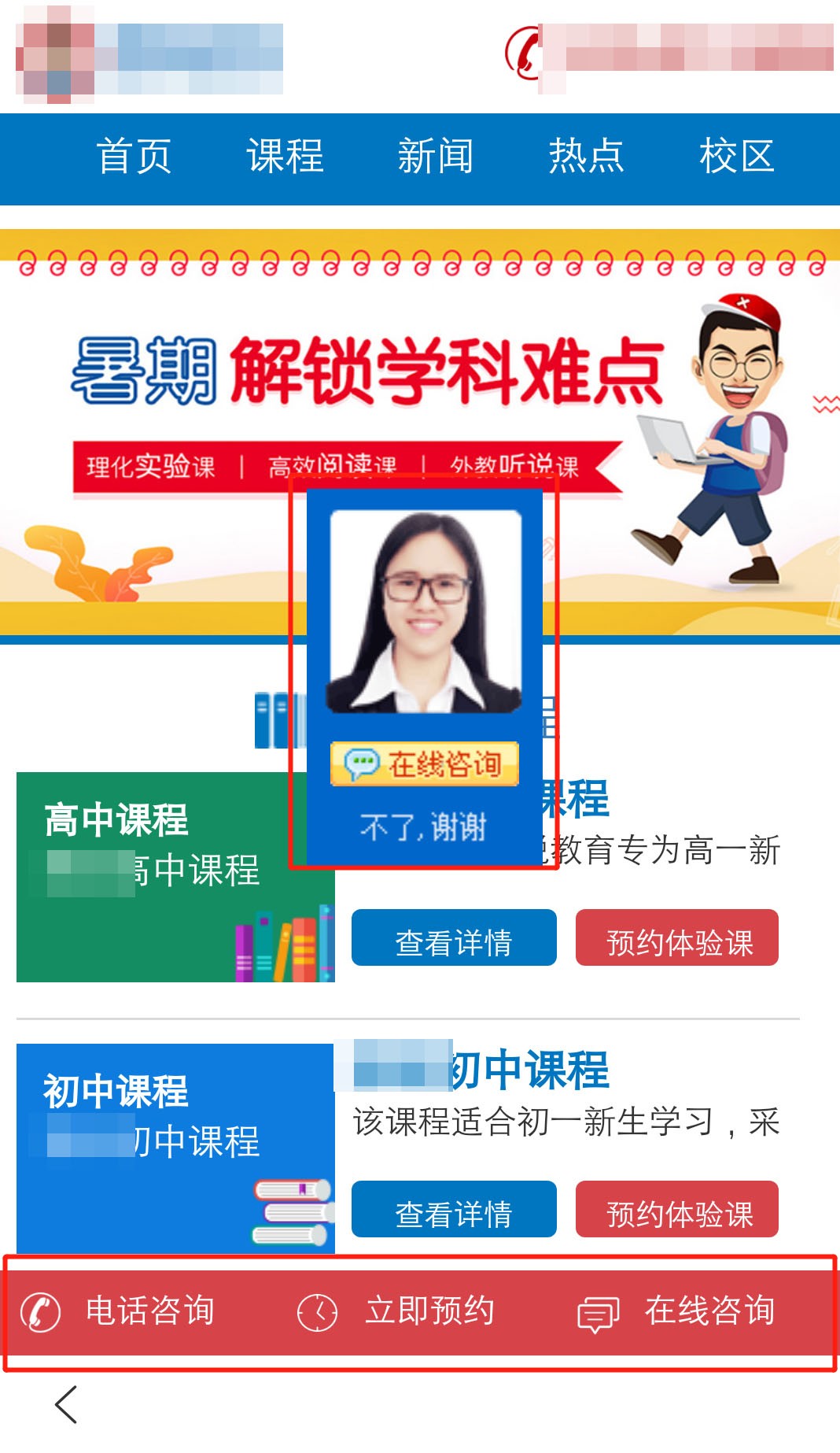 负面案例:咨询按钮在当前页出现2次